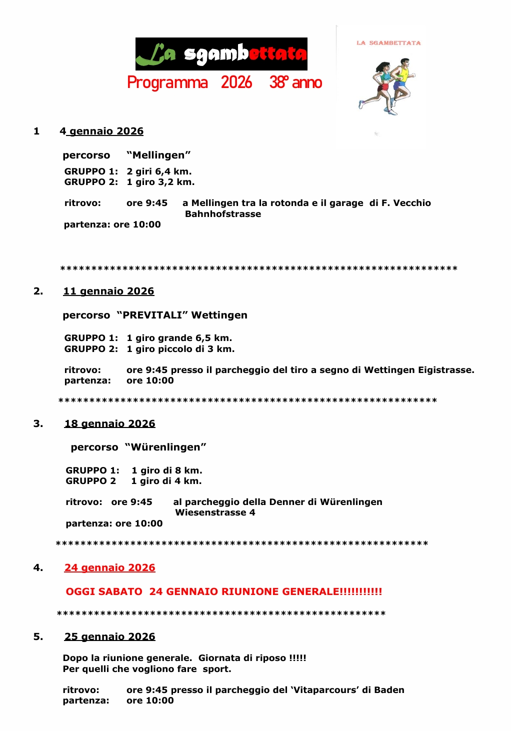 Programma Sgambettata 2026